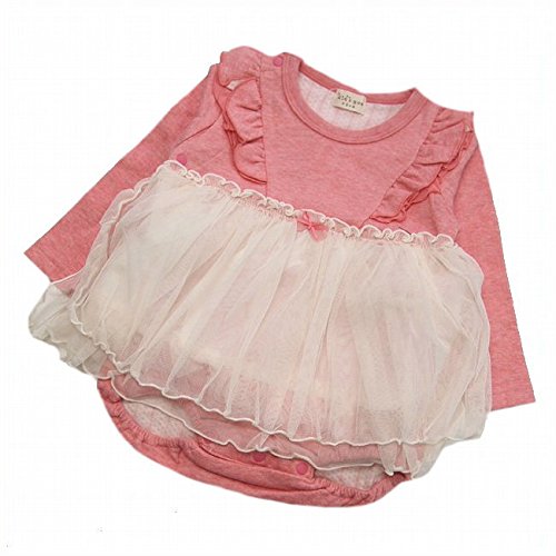 Kid'sZoo(キッズズー) フロント フリル チュール スカート付きベビーオール 長袖 W62706 ローズ サイズ80 女の子