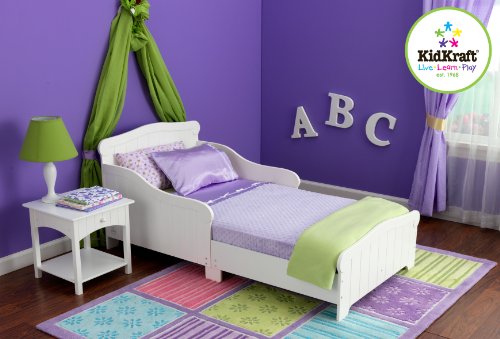 KidKraft Nantucket Toddler Bed Parents ready for their kids to stop sleeping in a crib will love our Nantucket White Toddler Bed. This bed is the perfect size for toddlers and will look great in any child's room. Features: Low to the ground Wainscoting wooden bedrails for extra safety Age range is over 15 months and less than 50 lbs Mattress not included Mattress is same size as crib mattresses Item Weight: 37.50 lbs. Dimensions: 53.25"" x 29.75"" x 23.63"" MDF & Rubberwood
