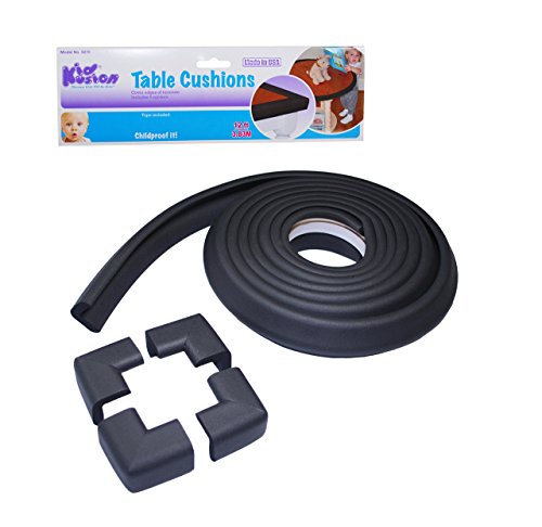 Attaches with double sided adhesive tape (included).. Protect children an older adults from sharp corners of furniture, shelves, counter tops and cabinets in your home. High density, soft, impact absorbent, 4 pack corner cushions and 12 feet of edge cushion with 3M double sided adhesive tape. Made in the USA. Protect children and older adults from sharp edges of furniture, shelving, cabinets and counter tops in your home. Our quality closed cell foam safety cushions are the only foam edge cushion product that is still Made in the USA. Our high density foam is durable yet soft and impact absorbent. We use only non toxic materials that are naturally flame retardant. There are no added flame retardant chemicals. Products meet ASTM F963 safety standards. Adheres to surface with 3M double sided adhesive.