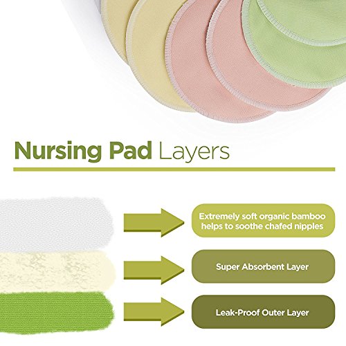 - ★ PREMIUM QUALITY NURSING PADS: Organic, hypoallergenic, absorbent and durable bamboo. Best for mom, baby and the planet! A new standard in the Nursing pads industry, made from high quality bamboo, designed keeping in mind the nursing mothers, 3 layered leak proof design will ensure NO MORE SOGGY LEAKS in the day and in the night !!
