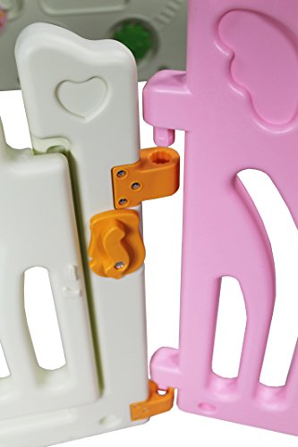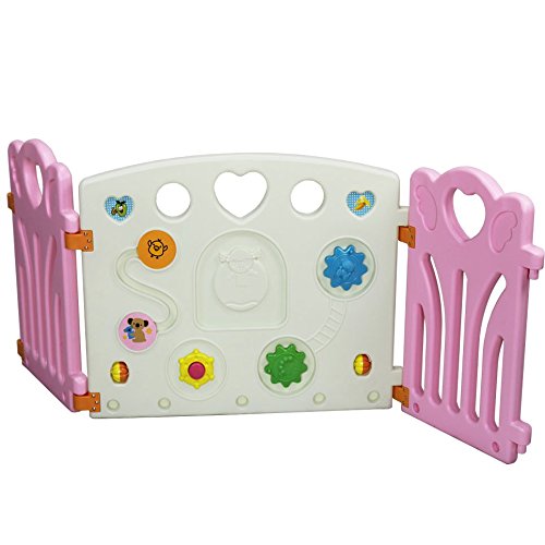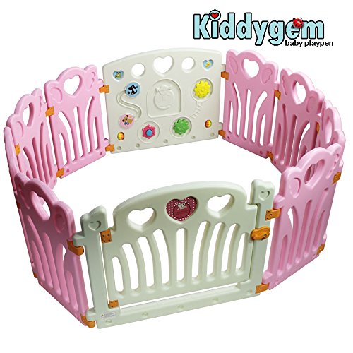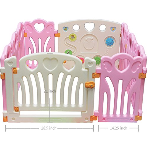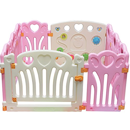 BPA free, Makes cozy 12.69 sq., easy to assemble, octagon snap-in locks stay tight and sturdy;No battery required, kids can explore sounds and develop mobility in simplest natural way?;Panels are customized with HEART handles, easy to lift up and store away;Multi function, can be used as fence, ball pit, playpen, play yard, play zone, safety gate etc. to your imagination?;Easy to assemble, snap in lock makes sturdy and safe play area?