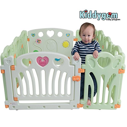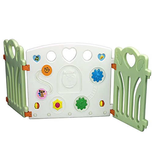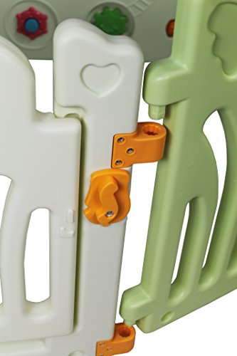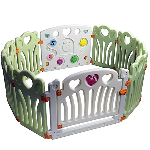 BPA free, Makes cozy 12.69 sq., easy to assemble, octagon snap-in locks stay tight and sturdy;No battery required, kids can explore sounds and develop mobility in simplest natural way?;Panels are customized with HEART handles, easy to lift up and store away;Multi function, can be used as fence, ball pit, playpen, play yard, play zone, safety gate etc. to your imagination?;Easy to assemble, snap in lock makes sturdy and safe play area?