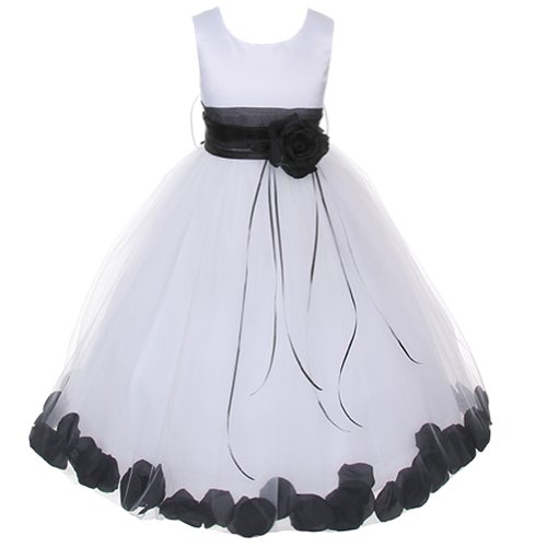Kids Dream Baby Girlsホワイトサテンブラック花びらフラワーガールドレス6 M