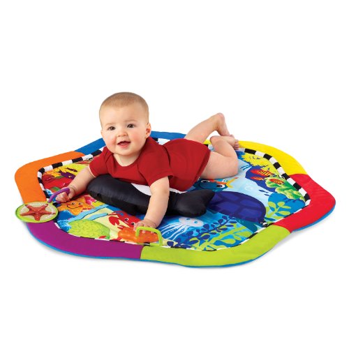 Baby Einstein Baby Neptune Ocean Adventure Play GymThis soft activity gym from Baby Einstein features an electronic aquarium with classical melodies and dancing lights.?A Whale shaped prop-up pillow accompanies baby on this underwater adventure, which comes to life with the crisp and colourful real-life scenery of the sea on the play mat. Tummy time is enhanced by the animal peek-a-boo flaps with real-life imagery, and the ability to reposition and attach toys to loops on the mat or loops on the whale pillow. Soft textured border encourages tactile development. The soft developmental Octopus toy is sure to be baby's favourite to take on-the-go.Features:? 2-in-1 musical aquarium toy can be used both with the gym and in the crib and features classical melodies and dancing lights that can be baby-motion activated or parent activated for 15 minutes of continuous play Whale-shaped prop up pillow for tummy time On-the-go plush Octopus with various textures and dangling Rattles and Teethers Several developmental and?colourful plush and plastic toys, Teethers and Rattles included Additional toys include: Large Fish shaped baby-safe Mirror Set of Ocean Discovery cards featuring real-life images of 6 underwater Animals Baby Neptune Rattle Star-shaped Teether 8 Links to reposition toys ?