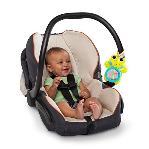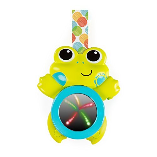 Rewards baby's movements with a colorful light show. The Lights & Laughs Frog from Bright Starts lights up with colors and silly sounds when baby shakes. This little frog's belly contains LED lights that will fascinate your baby at home or on the go. The fabric strap attaches easily to strollers, bags and car carriers.