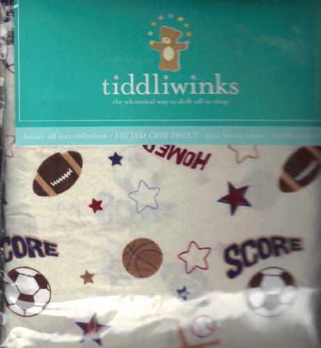 Tiddliwinks Future All Star Fitted Crib Sheet - Ecru;Fits a standard size 28 x 52 crib mattress.;Machine wash;Great for any babys nursery;Sports themed crib sheet