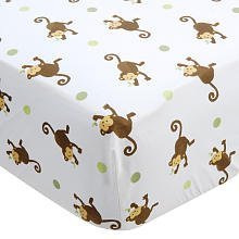 Fits standard toddler and crib mattresses: 28 x 52;Green and brown monkey print coordinates with the Pop Monkey nursery collection.;Made from soft 100% cotton.;Includes 1 fitted crib sheet.;Machine wash cold, tumble dry low.