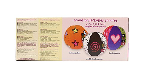 Product Description Kids Preferred set of three high quality plush and fabric baby balls chime, jingle or crinkle provide lots of fun for your little one; The Kids Preferred Amazing Baby Sound Balls are soft, multi-textured plush and fabric balls for young children to touch, listen to, play with, and delight in. Each ball makes a different sound--a chime, a jingle, or a crinkle. Each ball also has its own distinct patterning: two with bright colors, and one with black and white contrasts appealing to a baby's eyes. This fun sensory activity toy is infant safe, the set of three balls comes in a handy 12-inch carrying tube. What's in the Box Set of 3 baby sound balls and a carrying tube.; See all Product Description. Amazon.com The Kids Preferred Amazing Baby Sound Balls are soft, multi-textured plush and fabric balls for young children to touch, listen to, play with, and delight in. Each ball makes a different sound--a chime, a jingle, or a crinkle. Each ball also has its own distinct patterning: two with bright colors, and one with black and white contrasts appealing to a baby's eyes. This fun sensory activity toy is infant safe; the set of three balls comes in a handy 12-inch carrying tube. What's in the Box Set of 3 baby sound balls and a carrying tube. See all Product description