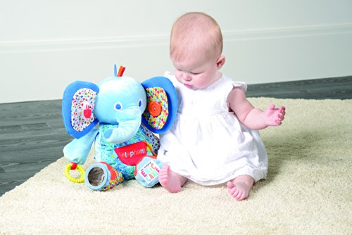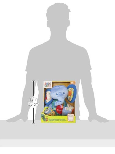 Inspired by the artwork featured in Eric Carle's timeless stories;Adorable plush elephant helps baby's development;Has mirror, oversized button, zipper, squeaker, chime, multiple textures, rings and pocket for in and out play;Good for at home or on the go;Measures 14