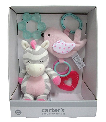 Set includes a plush zebra, crinkle bird with clip, and water teethers;Exceptionally soft and cuddly;Sure to become your little one's best friend;Makes for the perfect play (and nap time!) companion for your baby;Carter's is the leading brand of children's clothing, gifts and accessories in America