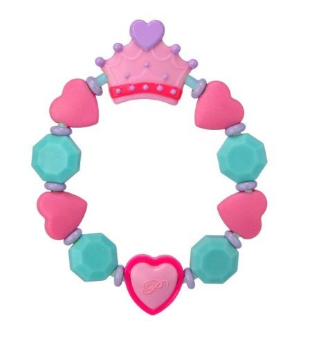 The Princess Jewel Teether sparkles in soft color and gem-like shapes. Baby's development needs stimulation, by sight, touch, and feel. By six months, she can discern color and shape. This teether introduces her to pastels and geometric forms - time to understand the difference between crowns, hearts, and diamonds.