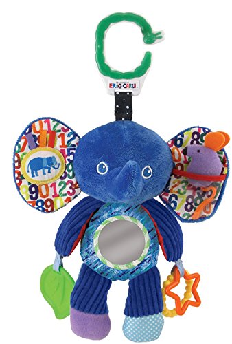 This interactive toy features printed fabrics based on original Eric Carle art and an exclusive Very Hungry Caterpillar clip. Developmental features include squeak, crinkle and rattle sounds, pocket play, textured teether, rings and a mirror. Eric Carle is the most celebrated children's author / illustrator of all time, with a book sold every 30 seconds and 88 million books sold worldwide. For the first time ever, many of Eric Carle's beloved book characters will leap from the pages into the arms of children, parents, grandparents, and teachers. Each huggable creature brings Eric Carle's vision of books to play with, toys to read to life for children of all ages. All Eric Carle toys include The World of Eric Carle sewn-on logo label and a hangtag featuring the original book cover art on the front.
