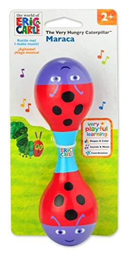 Features characters based on Eric Carle's vibrant art work, The Lady Bug is transformed into a wooden maraca, Allows little ones to make their own music, Perfect for boys and girls, Perfectly size at 6" long