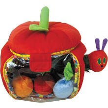 子供にも大人にも人気のはらぺこあおむしくんのりんごプレーセットです。 はらぺこあおむしくんを、赤いリンゴの中から出し入れできます。このりんごの中には、本の中にもでてくる、かわいらしい5つの果物が入っています。また、この果物は色々な音がして赤ちゃんを楽しませます。はらぺこあおむしくんの世界が本から飛び出したようで、お子様もきっと大喜び!