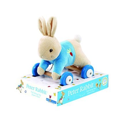 The Peter Rabbit Pull Toy allows small hands to give the mischievous little boy bunny a ride around the room or into the vegetable garden. This charming wooden pull toy has handsome blue wheels and a very soft, fluffy passenger.