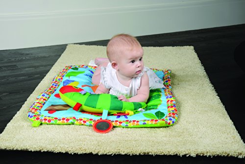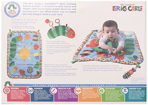 Inspired by Eric Carle's timeless story, the very hungry caterpillar;Pillow includes ring, teether and mirror;Keep baby safe with non slip bottom with loops to hook toys on;Great for tummy time fun;32 x 36