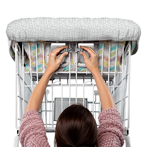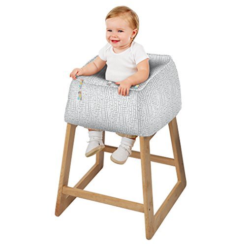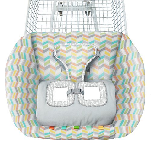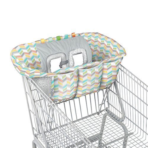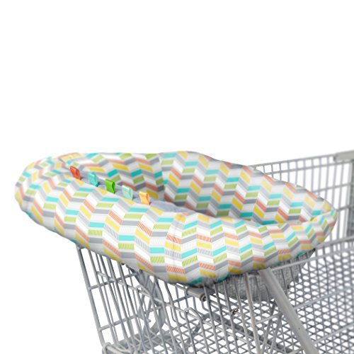 Reversible cover- Cozy side for shopping carts and wipe able side for restaurant high chairs;Snap and Secure buckle and t-strap provides twice the security for baby and can be used with either side of the cover;3 storage pockets for keeping baby's essentials organized;Taggies innovation for a smoothing tactile experience for baby;Elastic tether to keep toys and Sippy cups off the ground