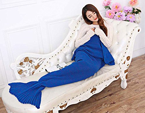 KidsTime Mermaid Tail Blanket Knit Crochet Mermaid Blanket for Adult and Kids Soft Sleeping Bag(Deep Blue) by KidsTime
