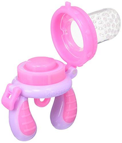 Safety and quality: BPA free and FDA tested. Recommended for 4+ months. Choose the size of the feeder according to the width of the child's mouth. Top-rack dishwasher safe.;Establish Safety and Healthy Eating: Allow your child to eat fresh food without the risk of choking. Replaceable silicone sacs are available in two different sizes.;Award Winning Feeder: Unique patent design, improved from traditional mesh bag feeders. Silicone sac makes for easy cleaning, does not retain odors, encourages chewing, more natural and comfortable to the baby.;Textured Teether: Designed with textured silicone surface works best with frozen fruit or ice cube to soothe teething pain and massage baby's gum.;Secure and Convenient: Shuts and locks easily with the childproof snap lock. Easy to grasp. Cap helps keep silicone sac and food clean.