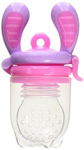 Safety and quality: BPA free and FDA tested. Recommended for 6+ months. Choose the size of the feeder according to the width of the child's mouth. Top-rack dishwasher safe.;Establish Safety and Healthy Eating: Allow your child to eat fresh food without the risk of choking. Replaceable silicone sacs are available in two different sizes.;Award Winning Feeder: Unique patent design, improved from traditional mesh bag feeders. Silicone sac makes for easy cleaning, does not retain odors, encourages chewing, more natural and comfortable to the baby.;Textured Teether: Designed with textured silicone surface works best with frozen fruit or ice cube to soothe teething pain and massage baby's gum.;Secure and Convenient: Shuts and locks easily with the childproof snap lock. Easy to grasp. Cap helps keep silicone sac and food clean.
