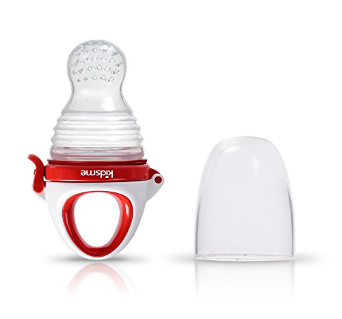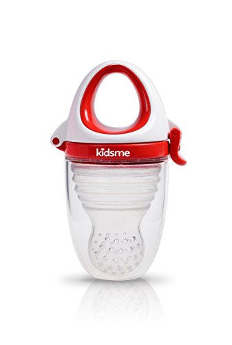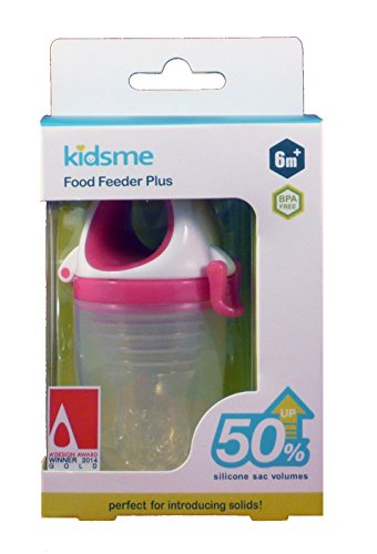 Safety and quality: BPA free. Recommended for 6+ months. 50% increased in volume compared to the original kidsme food feeder. Top-rack dishwasher safe.;Establish Safety and Healthy Eating: Allow your child to eat fresh food without the risk of choking. Replaceable silicone sacs are available in two different sizes.;Award Winning Feeder: Unique patent design, improved from traditional mesh bag feeders. Silicone sac makes for easy cleaning, does not retain odors, encourages chewing, more natural and comfortable to the baby.;Textured Teether: Designed with textured silicone surface works best with frozen fruit or ice cube to soothe teething pain and massage baby's gum.;Secure and Convenient: Shuts and locks easily with the childproof snap lock. Easy to grasp. Cap helps keep silicone sac and food clean.