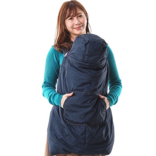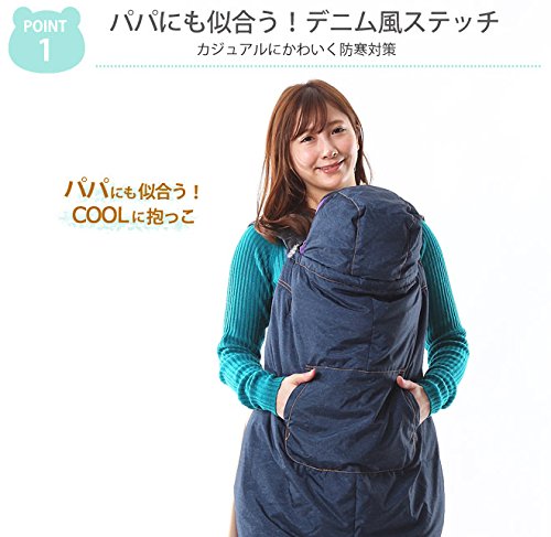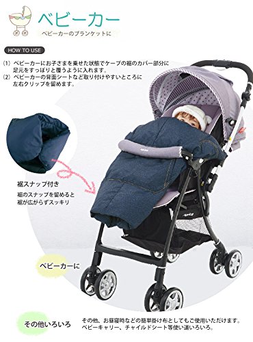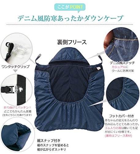 ベビーケープ 防寒 ダウンケープ フットカバー付き デニム風ステッチ FREE ネイビー