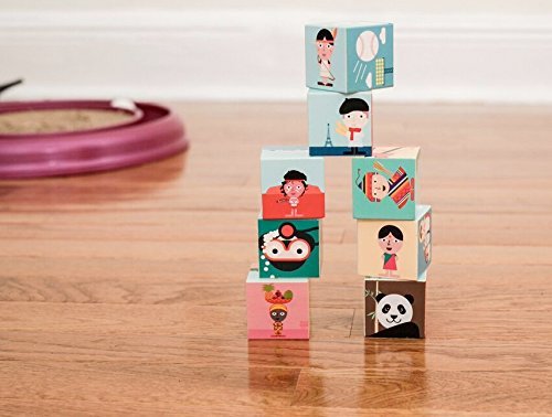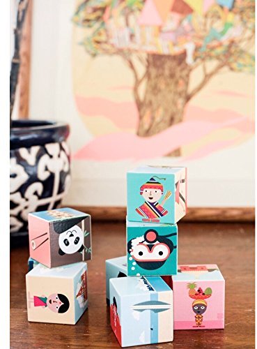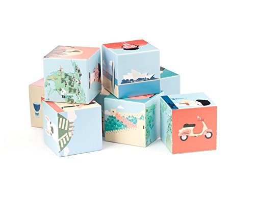 Build cultural knowledge with these illustrated blocks. Each one represents a different country and bears the cultural landmarks, animals, and people of the region. Geo Blocks come as a set of 8.