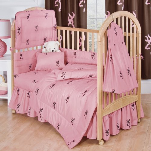 Browning Pink Buckmark 6 Piece Crib Set & A Set of 2 (Two) Complementary Valance/Drape Sets includes (Crib Fitted Sheet, Crib Bumper Pad, Crib Headboard Pad, Crib Comforter, Crib Bedskirt, Crib Diaper Stacker, 2 Valance/Drapes Sets)- Save Big By Bundling! by Kimlor