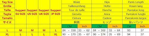 XL: ウエスト: 90-170 cm/35-67 インチ;ヒップ: 90-174 cm/35-69 インチ;パンツの長さ:94 cm/37 インチ;
