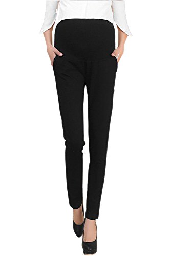 KINDOYO レディース 夏 ファッション カジュアル マタニティ パンツ コットン 弾性 ハイウエスト オーバーバンプ オフィスワーク 妊娠中のパンツ, ブラック/M