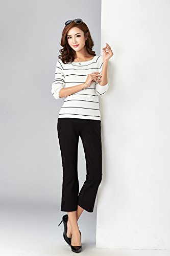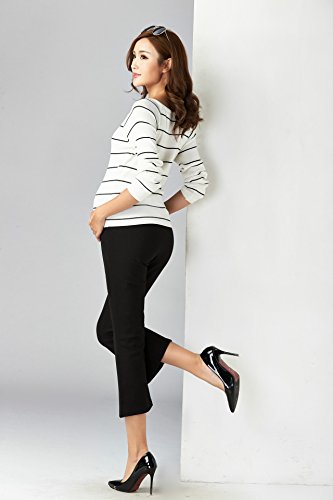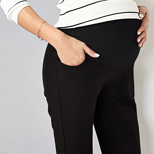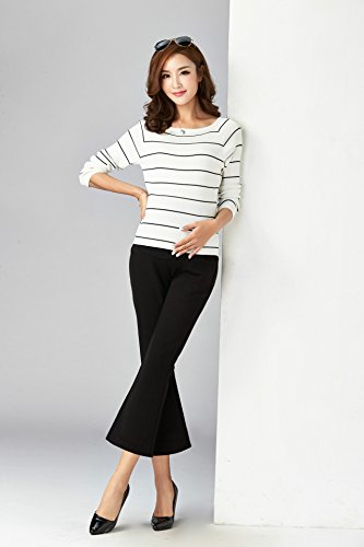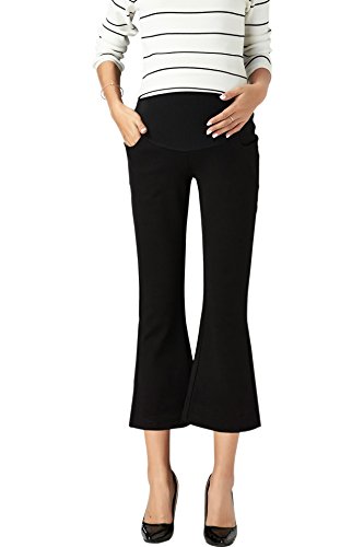 KINDOYO レディース カジュアル 夏 ファッション マタニティパンツ ハイウエスト クロップドパンツ 妊娠 フレアパンツ, ブラック/M