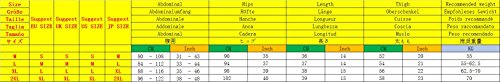 JP XL =タグXL; XL:腹部:88-116cm/35-46インチ;ヒップ:98cm/39インチ;長さ:38cm/15インチ;太もも:56cm/22インチ;推奨重量:62.5-70kg;