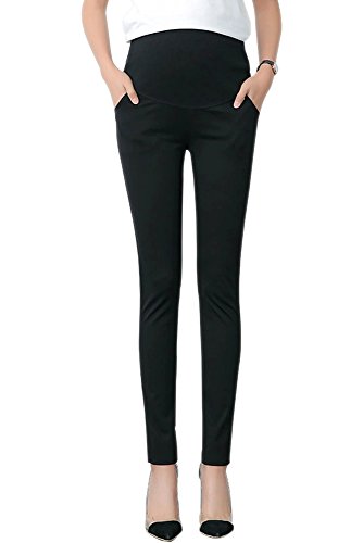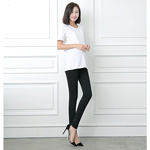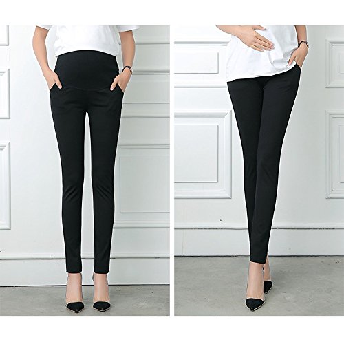 KINDOYO レディーズ 春 ファッション マタニティ パンツ オフィス 作業 オーバーバンプ 弾性ウエスト 妊娠中のロングパンツ, ブラック-タイトな足/XL