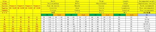 JP S =タグS; S:ウエスト:76-108cm/30-43インチ;ヒップ:84-93cm/33-37インチ;太もも:48-56cm/19-22インチ;長さ:85cm/33インチ;推奨重量:54kg;
