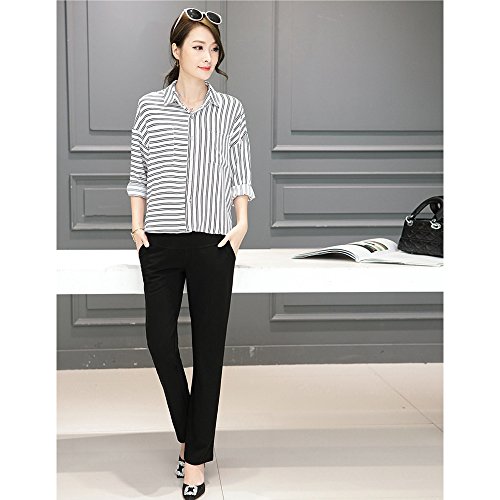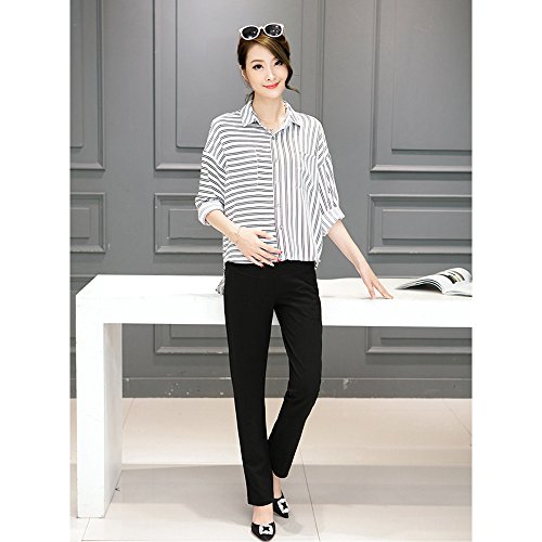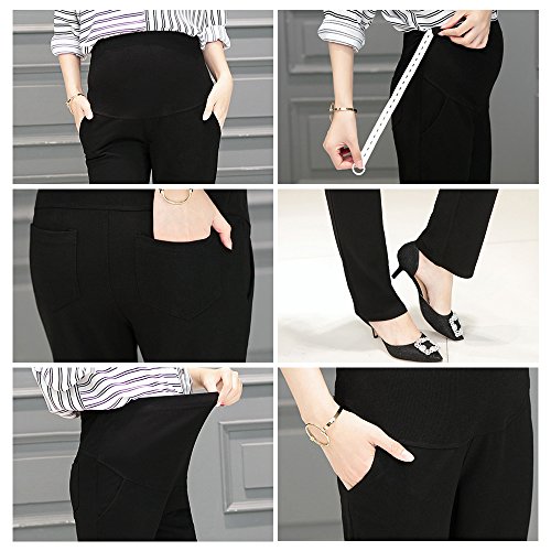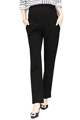 KINDOYO レディース 夏 ファッション カジュアル マタニティ パンツ ハイウエスト オーバーバンプ オフィスワーク 妊娠 パンツ, ブラック/L