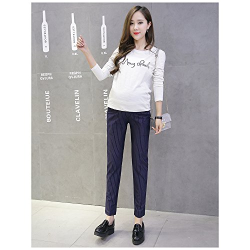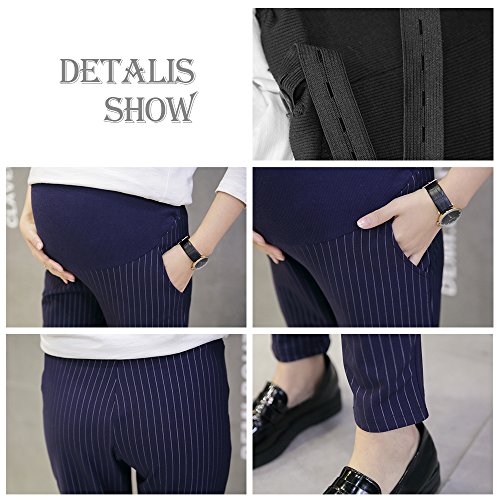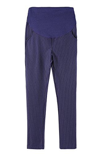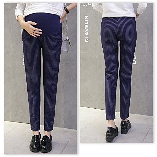 KINDOYO レディース ファッション マタニティ パンツ ストライプ クロップドパンツ オーバーバンプ オフィスワーク 妊娠中のパンツ, ダークブルー/XL