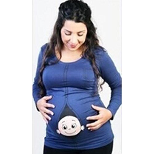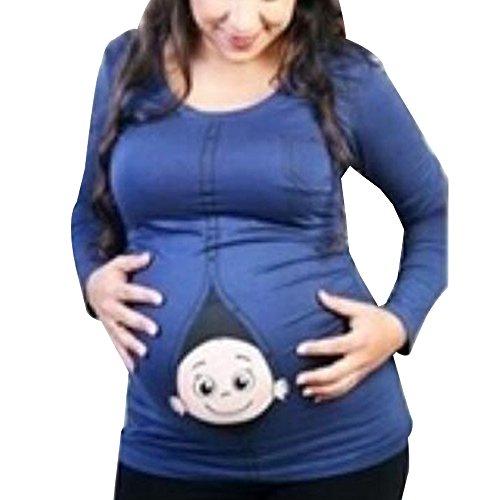 KINDOYO 面白いジッパーキッズは、妊娠の贈り物のために妊娠Tシャツピュアカラーかわいい長袖プラスを印刷しています (ブルー)