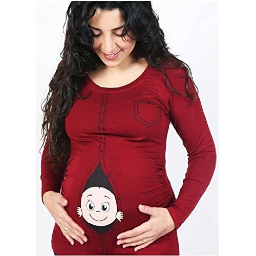 KINDOYO 面白いジッパーキッズは、妊娠の贈り物のために妊娠Tシャツピュアカラーかわいい長袖プラスを印刷しています (暗赤色)