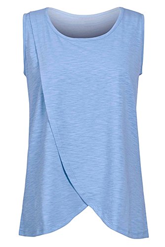 KINDOYO レディース ママ 産後 マタニティ 授乳服 トップス クロスアップタイプ ベスト ソリッドカラー ノースリーブ 看護用Tシャツ S-5XL, ブルー/5XL