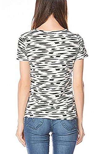 KINDOYO マミー レディース マタニティ服トップ 生後 授乳服 ストライプ Tシャツ 妊娠 半袖 看護 トップ, ブラック/S