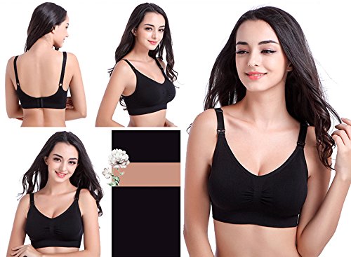 KINDOYO スタイリッシュベストセラー授乳婦人用妊婦スポーツブラ (L, ブラック)
