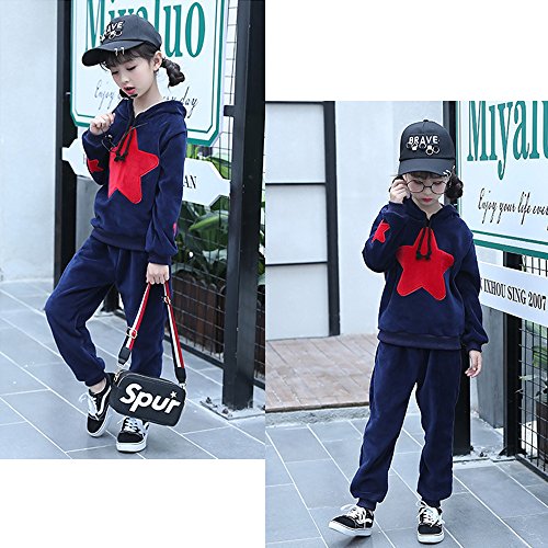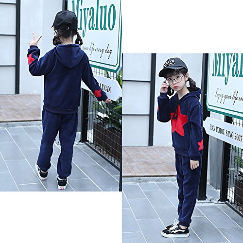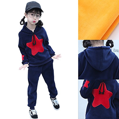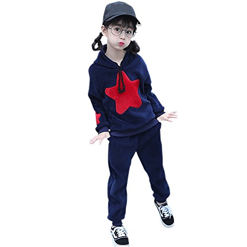 KINDOYO 秋と冬の少年少女ゴールドベルベットプラスベルベット厚いセータージャージ (130、ネイビーブルー)