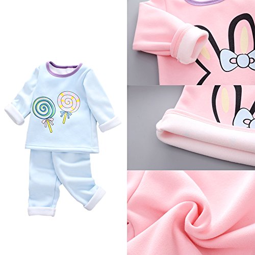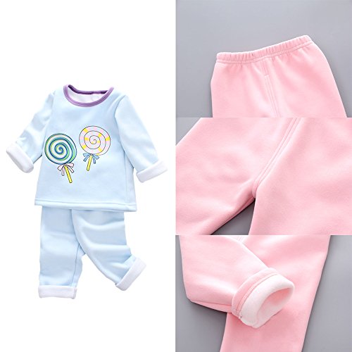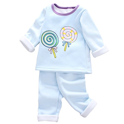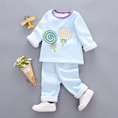 KINDOYO 4サイズの子供服ベビー服男性と女性の赤ちゃん服ラウンドネック長袖 トップス+ズボン ロリポップパターン, ブルー