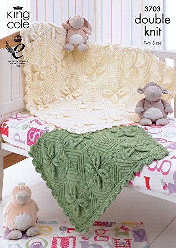 This DK knitting pattern leaflet King Cole 3703 will instruct you on how to create a baby pram blanket and cot blanket.;This pattern gives you measurements to create the garments to approximately 46cm/18 x 69cm/27.25 Pram 91cm/36 x 114cm/45 Cot.;This King Cole knitting pattern is suitable for use with most double knitting yarns however, tensions may vary and we recommend you knit a tension square before knitting the whole garment.;See image provided for the number of 100g balls of wool required for each garment.;Please note that this is a knitting pattern and NOT a set of finished knitted garments. All knitting instructions are written in English