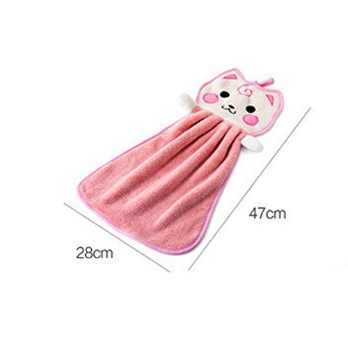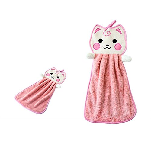 KingKingming 子供タオル ベビースキンケアハンカチ サンゴのベルベットのタオル 漫画猫 ハンカチ ピンク