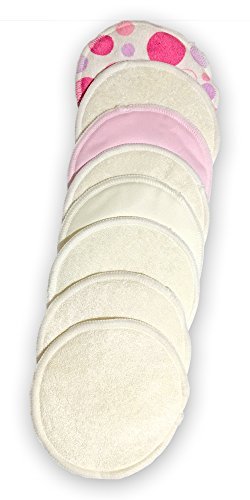 ??SAY GOOD BYE TO EMBARRASSING LEAKS - The organic bamboo Nursing Pads has 3 layers, The layer on the inside is highly absorbent. The outside layer facing the bra is water-proof, which prevents milk from leaking through to bras and shirts. NO MORE embarrassing LEAKS. Organic Cotton Reusable, Washable Nursing Pads;??SAVE MONEY - Organic bamboo nursing pads are ??EASY TO WASH AND STORE , you don?t need to continuously buy new ones as with disposable nursing pads. You will save money;??SUPER COMFORTABLE AND MORE ABSORBENT - nursing pads have an extra soft bamboo lining which feels SO SOFT on sensitive SKIN and nipples. They are hypoallergenic, breathable, and thin enough to fit under your bra AND NOT BULKY .;??8 PACK ( 4 PAIR ) - LIGHT PINK - POLKA DOTTED -CREAM - OFF WHITE - Waterproof layer. Reusable after each breast feeding and machine washable. Very durable. Gets softer and softer after each wash.;??SUCCESSFUL BREASTFEEDING begins with comfort for mom. ASIYAM Ultra Soft Organic Reusable Nursing Pads can be used with or without your favorite nipple creams. Order 1 or more packs for your maximum comfort and protection! CLICK THE ADD TO CART BUTTON ON THE UPPER RIGHT.
