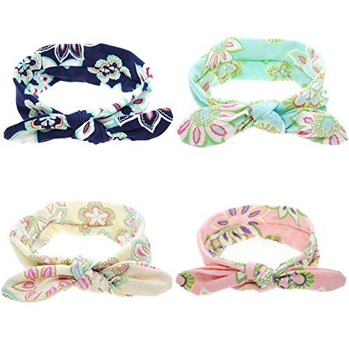 Kingsie ヘアバンド ベビー 4点セット ヘッドバンド ヘアアクセサリー 髪飾り リボン 花柄 コットン かわいい 弾力性 新生児 赤ちゃん 出産祝い 誕生日 記念撮影 (2A)