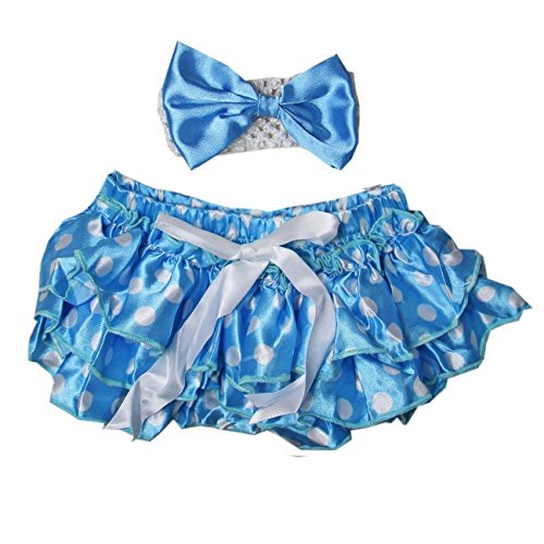 Kirei Suiベビーポルカドットサテンフリル付きブルマ&リボンヘアバンド カラー: ブルー
