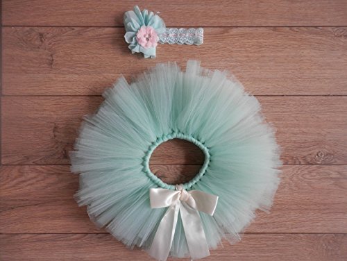 kishiya ベビー用 チュチュスカート 赤ちゃん スカート 百日記念 チュールスカート 新生児 赤ちゃん 出産祝い 写真 撮影 寝相アート ヘアバンド付き 1ヶ月と百日二つのサイズ選択可能 (グレー) (1ヶ月)