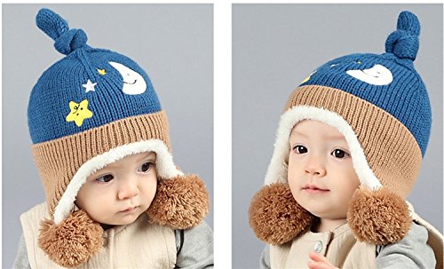 Kishiya ベビー帽子 ニットキャップ かわいい 防寒 ニット帽子 (濃いブルー)